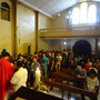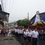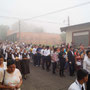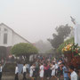 Una hora más tarde, después de haber recorrido las calles de la ciudad (que ese día amaneció con una densa niebla), las campanas de la Iglesia repicaban para recibir la imagen cargada a hombros de los miembros de las hermandades de San José y San Sebastián.